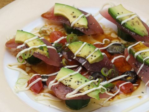 醤油ベースの和テイスト、マグロとアボカドのカルパッチョ