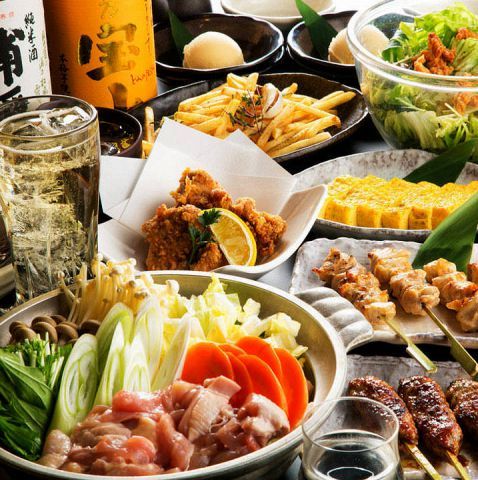 クチコミで鶏料理が美味しいと評判のお店です。焼き鳥やもつ鍋など全8品と飲み放題が付いたお得なコースがおすすめ。飲み放題付きのコースだと最初から値段が分かっているので、お会計の心配をしなくていいので安心して楽しめますね!