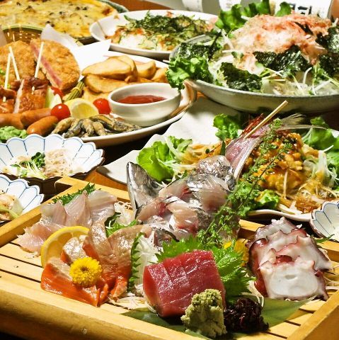 コース料理にもたっぷりのお刺身!揚げ物や焼き物など、お得に楽しめます