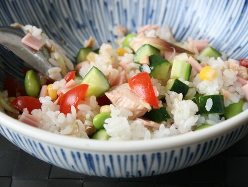 ライスサラダ。日本ではまだまだマイナーな料理です。 「ご飯は熱々ほかほかでないと!」という声も聞こえてきそうですが、お弁当もおにぎりもお寿司もご飯は温かくありませんよね。 「ドレッシングとご飯の組み合わせに抵抗がある」という方、ドレッシング…