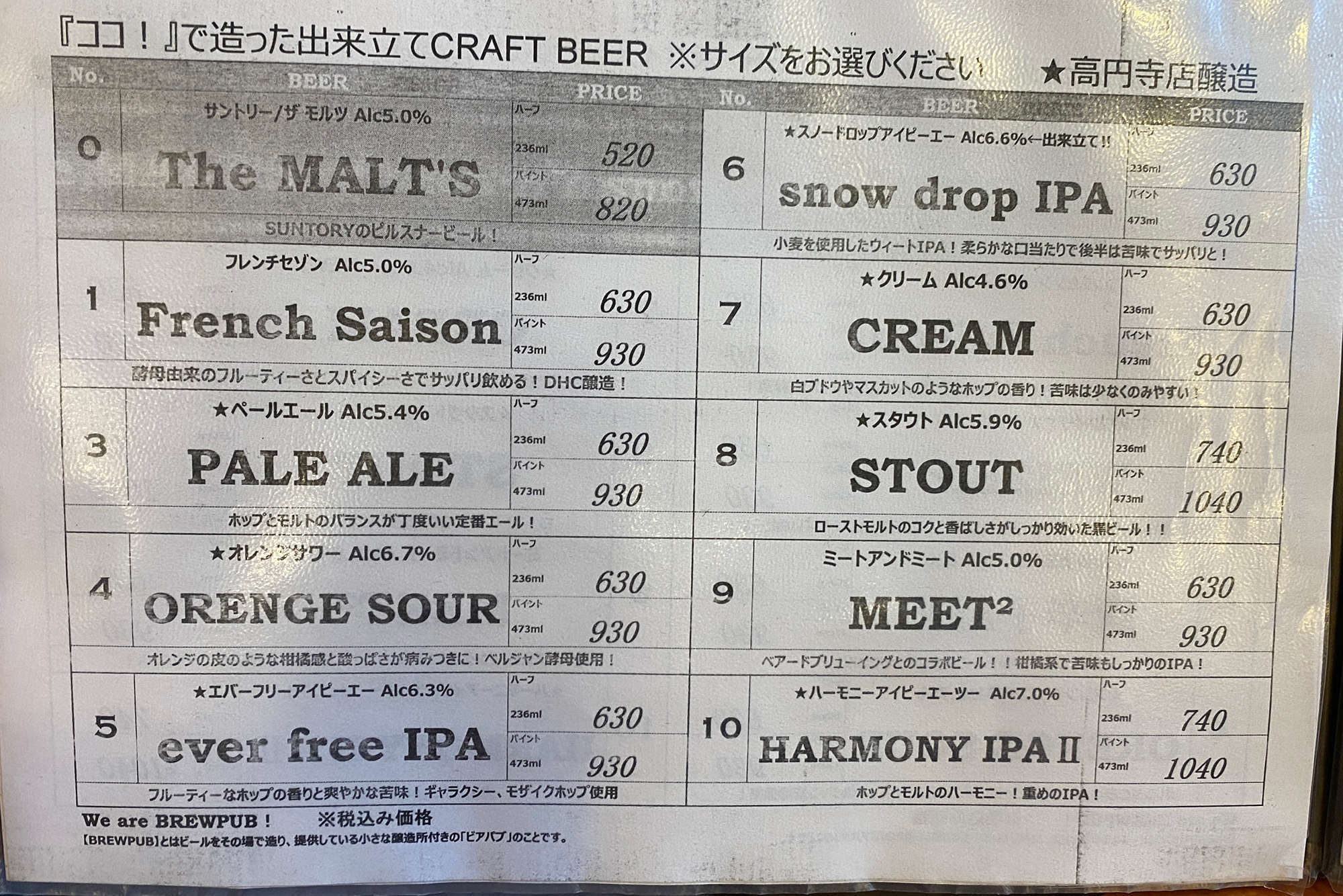 さて、この日にタップに繋がっていたビールは(The MALT'S以外)すべて飲んでみたわけですが……