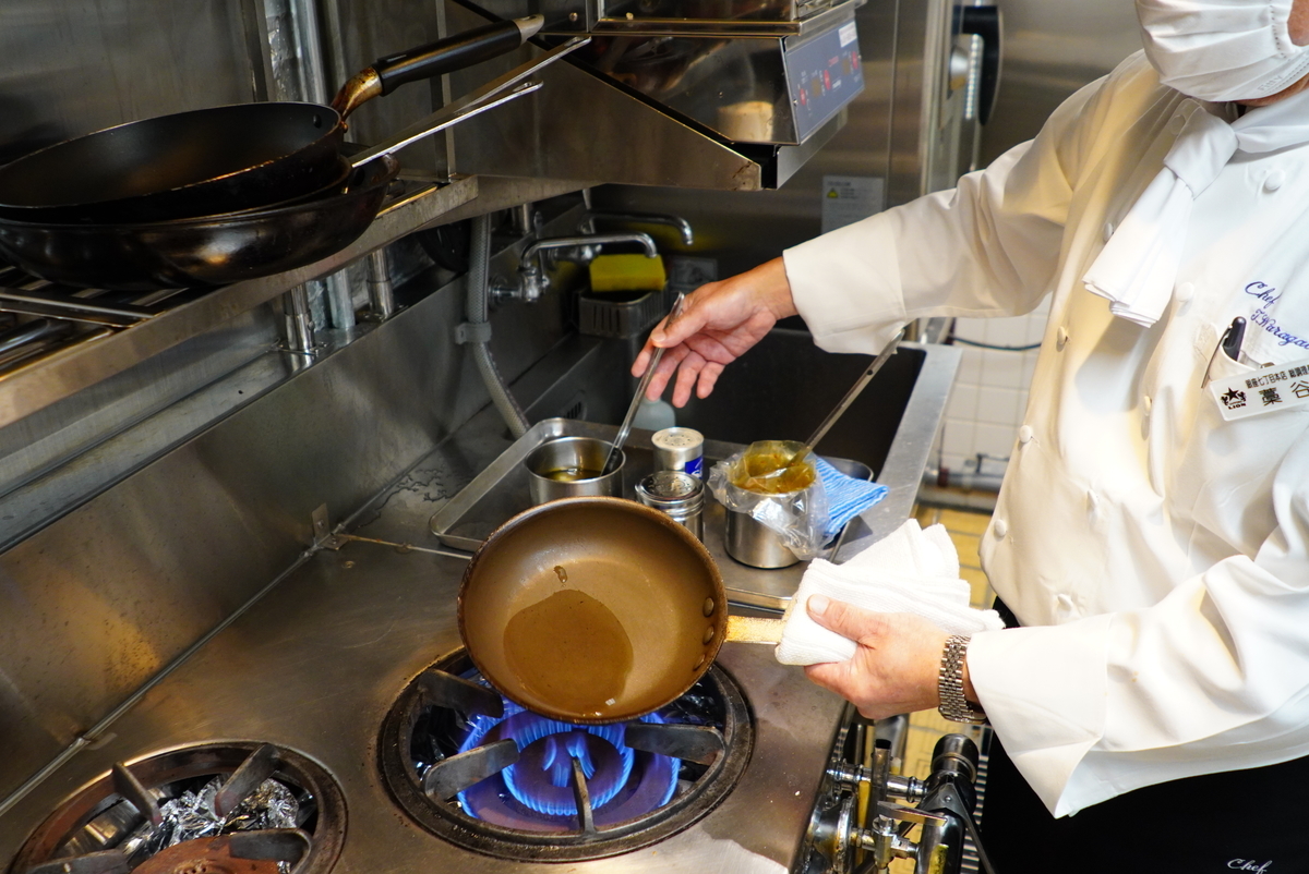 藁谷シェフ:では、調理に入っていきます。まずはフライパンにサラダ油を大さじ1入れます。