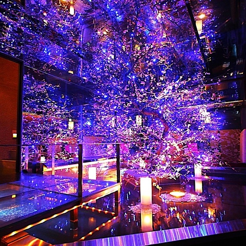 【駅近で高クオリティの個室空間】当店のエントランスには幻想的な梅の木があり、非日常空間がお客様を出迎えます。華やかながらも落ち着きある内装が、ウメ子の家の自慢です。