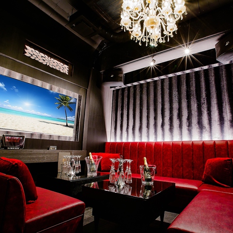 6F「モディス Libra」。豪華なソファーやシャンデリアの他、専用のバーカウンター・ワインセラーをご用意。ダーツとマッサージチェア付きでお楽しみ頂けます。