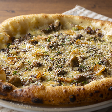 釜で焼いたピザは当店の人気メニュー!もちもちした食感の生地は食べ応え抜群!定番のマルゲリータからウルフギャング・パック自慢のスモークサーモンなど種類豊富にご用意しております!