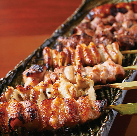 遠赤外線でじっくりと焼き上げた串打ち。もも、レバー、ぼんじりなど。炭火でじっくり焼き上げ、外はパリッと、中はジューシー!てごねのつくね串は特におすすめです。