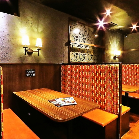 【4名様~8名様向けのテーブル席】温かみのある照明で落ち着いた雰囲気を演出しております。周りが仕切られたBOXのお席なら、人目を気にすることなくお楽しみいただけます。