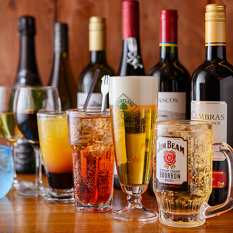 飲み会、宴会に最適な飲み放題付コースは4,500円~、単品飲み放題は1,980円~ご用意しております。