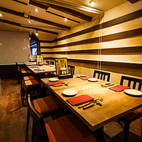| テーブル | 18名様×1 | ゆったりしたテーブル席が並ぶ広々とした店内は、一面の窓が開放感を演出。肉料理の醍醐味を引き立てるシンプルでモダンな空気が流れます。 |