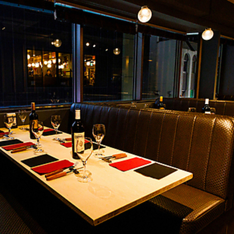 | ソファー | 6名様×1 | 開放感あふれる一面の大きな窓が特徴の店内は、明るく広々とした空間。カジュアルなテーブル席で気軽にステーキとワインを楽しめる雰囲気です。 |