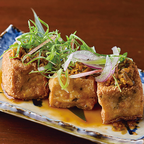中からとろ~りとろけだすモッツァレラチーズがたまらない!ねぎとつくね、更に豚肉も巻かれたボリュームたっぷりな大人気メニュー。