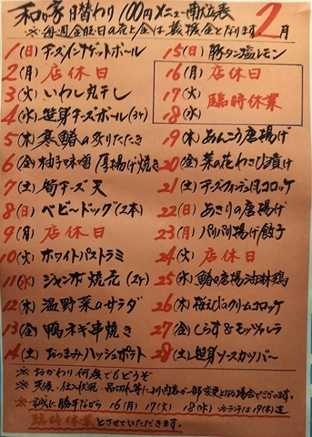 大人気の100円メニューはお代わり何度でもOK★メニューはXでもチェックできます♪@izakayawagaya