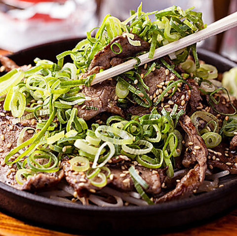 牛の肩バラ肉の一部である「こうね」!一頭の牛からわずかしか取れない、大変希少な部位です。当店では、こうねを新鮮なねぎと一緒に鉄板で香ばしく焼き上げてご提供いたします♪こうねは、脂に甘みがあり、噛むほどに旨みがじゅわっと口の中に広がります。シャキシャキとした、ねぎとの食感の相性は抜群!