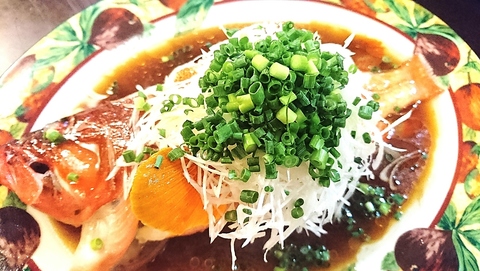 中華宴席の華形料理!季節の鮮魚を丸ごと蒸上げます。料理人の経験と勘を活かしたひと皿。特製の餡(たれ)をからめて食べるのが醍醐味。