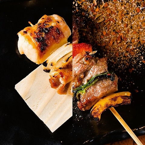 紀州備長炭で香ばしく焼き上げる焼鶏はそのままに。炭火焼料理は《鶏・牛・豚肉・ラム・鴨》などブラッシュアップ。
