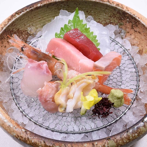 自慢の新鮮な刺身を盛り合わせでご用意しております。ご注文をいただいてから新鮮な魚を取り出し、その場で調理を行いますので、魚介本来の旨味を存分にお楽しみいただけます。