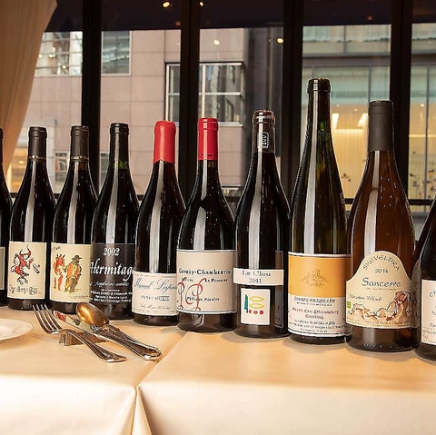 ワインはフランスを中心にグラスで30種類以上、ボトルで500種類以上取り揃えております。ここでしか味わえない料理とワインをお楽しみ頂けます。お料理やお客様のお好みに合わせたオートクチュールワインセット(ワインペアリング)もオススメです。