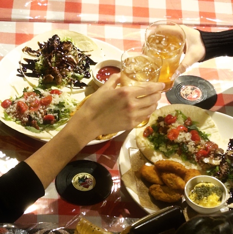 ブーメラン特製タコスなど多種多様なフードに加え、100種類以上の豊富なドリンクもご用意しております!