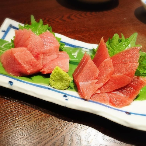 赤身と極上とろの刺身盛り合わせをご用意!!口の中で柔らかい食感と旨味がふわぁっと広がります!!