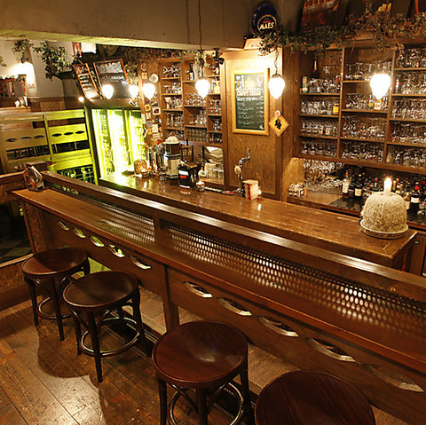 気軽なパブ感を味わえる、カウンター&スタンディング席。木の風合いやパブ感たっぷりのインテリア…この雰囲気で飲む一杯は格別です!