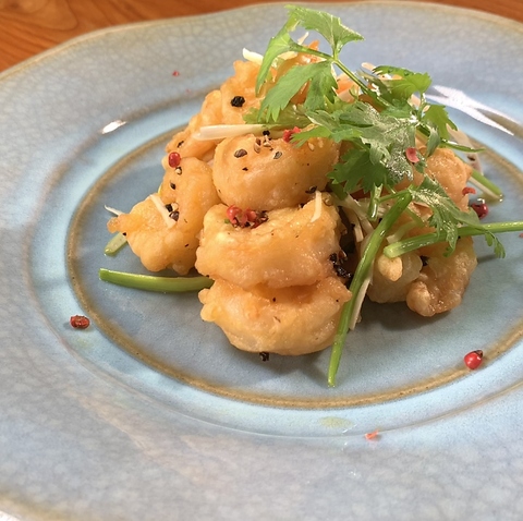 ぷりぷりのエビを香ばしい黒胡椒で炒め、旨味とスパイシーさが絶妙に絡み合う一品。食欲をそそる香りとピリッとした刺激が、癖になる美味しさです!