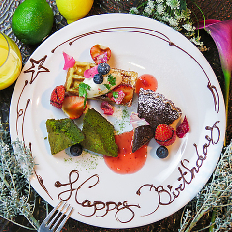 SNS映え間違えなし!お祝い用のデザートプレートが人気です。誕生日・記念日にぜひご利用ください◎