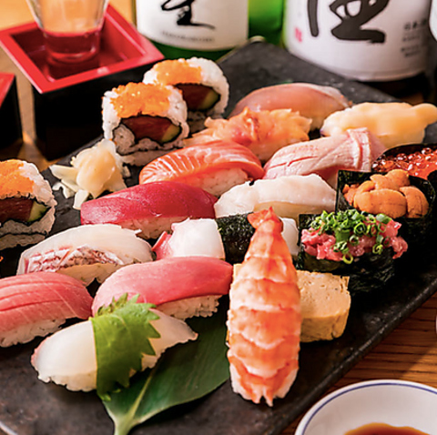 「あじ姿造り」や「ひらめ刺」といった極上の鮮魚に加え、贅沢な「上刺身盛り合わせ」や厳選の「貝刺し盛り合わせ」など、鮮度抜群の華やかな刺身をご用意。握りは定番のネタから希少なネタまで多彩なラインナップで、熟練の技が光る「おまかせ塩づくし」や「まぐろづくし」といった趣向を凝らしたにぎりづくしで、寿司の奥深さを楽しめます。