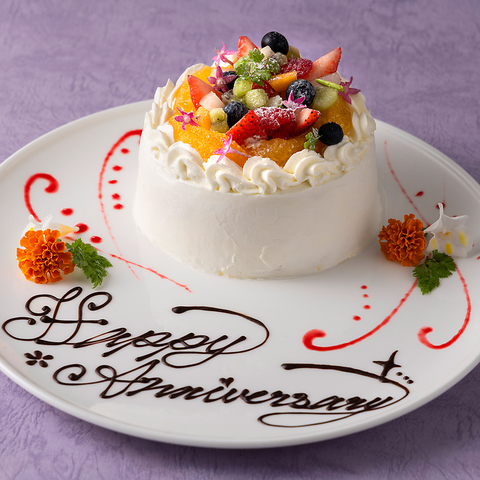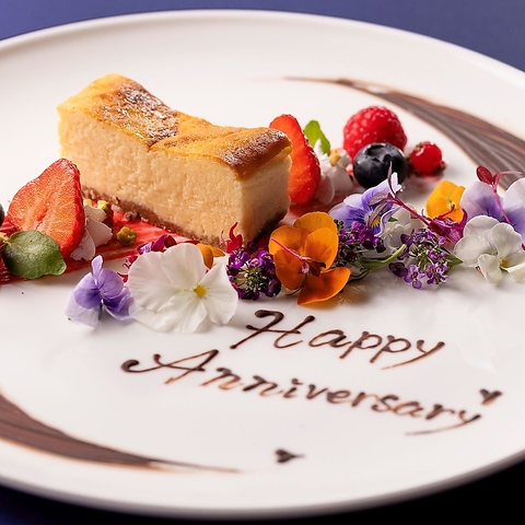 お好きなメッセージをプレートにお入れする1名様分のアニバーサリー用デザートプレート。カジュアルなサプライズやお祝いにぴったりの一皿です。(事前予約制)
