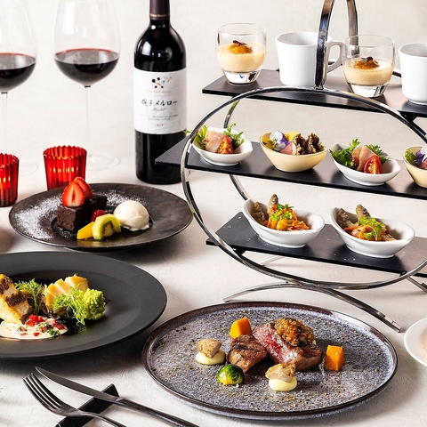 華やかなオードブルスタンドから始まり、魚、お肉からデザートまで愉しめるシェフおすすめコース。