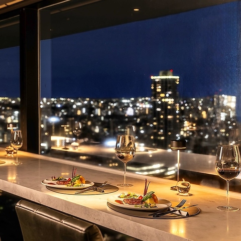 夜景と融合した大人の空間で心休まるひとときを。一歩店内に踏み入れると目の前には煌びやかな夜景が織り成す光の演出は最高のひとときの始まり。料理とドリンクのマリアージュをお楽しみください。