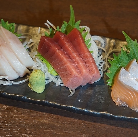 その日一番の鮮魚を厳選。まぐろを中心に、旬の魚をバランスよく楽しめる三点盛り。迷ったらまずはこれ!
