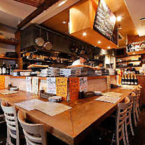 オープンキッチンを目の前に望むカウンター席は、お一人様から少人数でのご利用に最適。ライブ感あふれる調理風景を眺めながら、出来立ての本格ビストロ料理を味わっていただけます。隣席との距離感も程良く保たれており、お仕事帰りのサク飲みやデートにもぴったりです♪