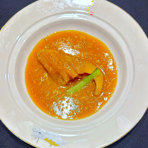 肉厚抜群の一級品!!ぜひ堪能して下さい。 中国料理で王様と言われるフカヒレ姿煮込み。当店では、肉厚のヨシキリザメの尾ビレの姿煮を、お手ごろのコースにてお召し上がりいただけます。