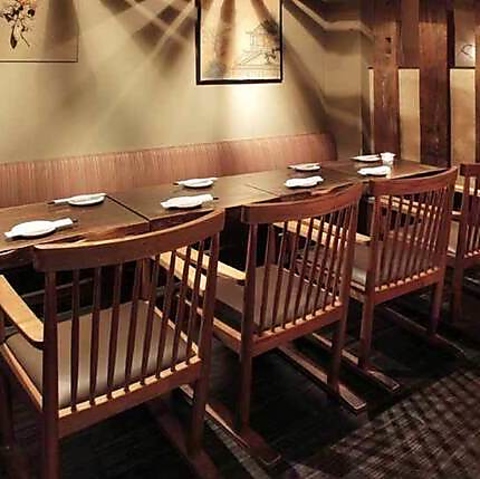 奥行きのあるカウンター席、ウッドの温もり溢れるテーブル席、プライベート感漂う半個室をご用意しております。カップルでのデートから大人数でのご宴会まで、お客様の様々なシーンに合わせて最適な空間をご提供いたします。心地よい雰囲気の中で、特別なひとときをお過ごしください♪