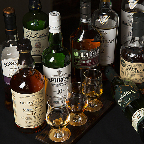 国産ウイスキーにスコッチ、バーボン等約70種の豊富はラインナップ。暑い時期には,ライトな味わいのアイリッシュウイスキーがイチオシ!