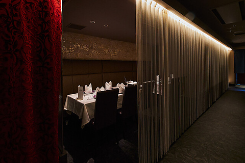 6名様~最大38名様まで、用途に応じた様々な個室のご用意がございます。ラグジュアリーなVIP空間や、店内奥にあるプライベート空間など、シーンにあわせてご利用下さい。デートや記念日にもぴったりの非日常をお過ごしください。さまざまな用途にご利用いただける気品ある店内で、極上のひとときをお過ごしください。