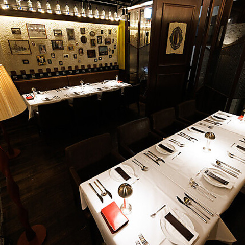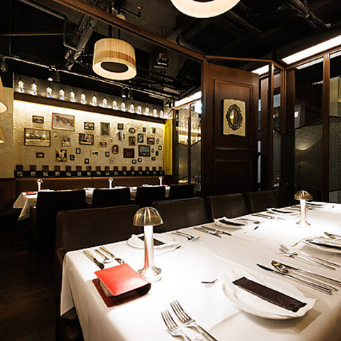 店内はオシャレで落ち着いた雰囲気の空間が広がっています。夜は照明が暗めに設定され、大人の隠れ家のようなロケーションです。デートや接待、記念日など、大切なシーンを優雅に演出いたします。
