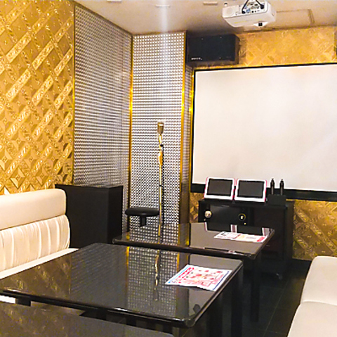 迫力満点の二面プロジェクタールームになります。本人出演などの映像重視の方はぜひこちらのルームをご体験ください。こちらのお部屋は人気が高いため、店舗までお電話にてご予約くださいますようお願い申し上げます。ご予約の際は、「デュアルモニタールーム希望」をお申し付けください。