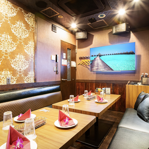 条件 最低保証人数は20名様~ ※保証人数は時期によって変動いたしますので詳細は店舗までお問合せください キャンセル規定 仮予約の場合はキャンセル料金は一切かかりません。 設備・サービス 75インチモニター×3台 / 120インチプロジェクター×1台 / LIVE DAM STADIUM / ワイヤレスマイク×4本 / DVD,ブルーレイプレイヤー / フリーWi-Fi / スマホ接続用コネクター / 充電器 / セルフバーカウンター等