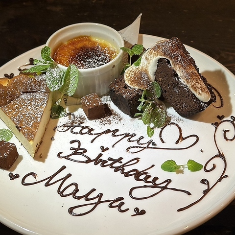 誕生日や記念日にぴったり!メッセージ付きプレートでサプライズ演出。大切な人との特別な時間を華やかに♪