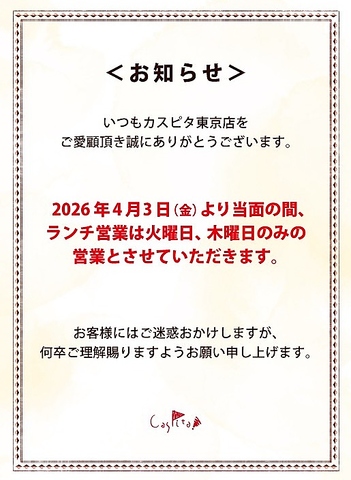 ★♪ Caspita!Tokyo SPECIAL LUNCH ♪★