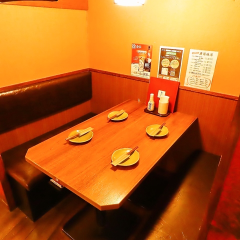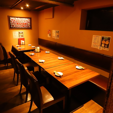 大人の雰囲気がコンセプトの半個室は、お勤め先での宴会や気の合う仲間との飲み会にもおすすめです。当日利用できるコースもご用意しておりますので是非ご活用ください。ご予約やお問い合わせはお気軽に店舗までご連絡ください。