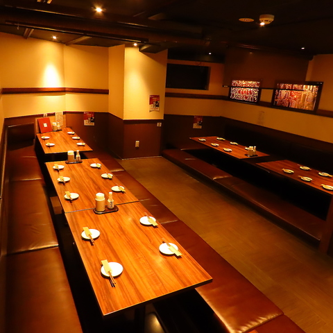 大人数での宴会に最適な居酒屋として、広々としたテーブル席をご用意。飲み放題付きコースも充実しており、個室の利用も可能です。設備や環境が整っているので、幹事様が安心してご予約いただけます。