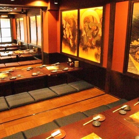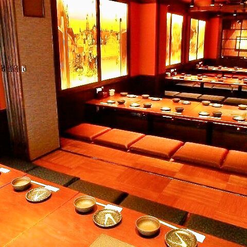 足を伸ばして寛げる掘りごたつ座敷は大人数での宴会にオススメ!最大60名様までご利用可能なお席は人気のため、ご予約はお早めに♪