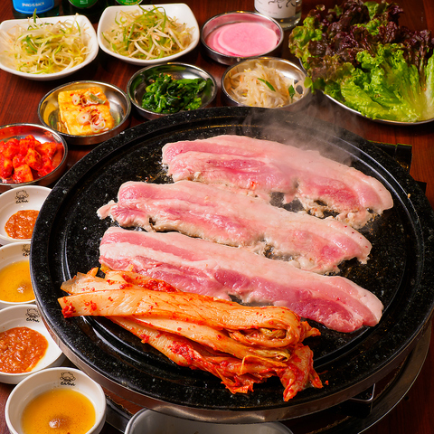 本場韓国さながらの活気ある店内で、最高級の国産生豚サムギョプサルを心ゆくまで堪能!