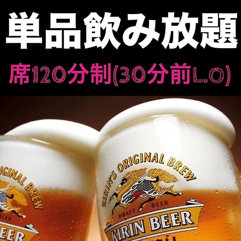 【120分/1958円(税込)】生ビールOKの単品飲み放題をご用意!ビールはキリンの一番搾りです♪サク飲みに◎