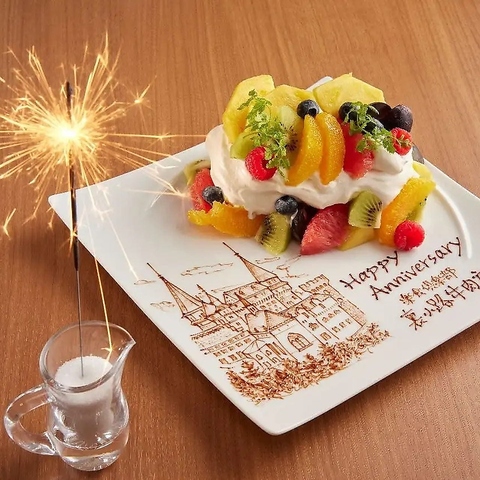 記念日や誕生日など、大切な方と過ごす特別な時間に◎お祝いの気持ちや日頃の感謝をメッセージプレートで伝えませんか。似顔絵や推しのイラスト、メッセージ内容など、どんなデザインでもお任せください!事前にご予約・ご相談いただければ、ご希望に応じてご準備させていただきます。※内容や大きさにより金額が変わります