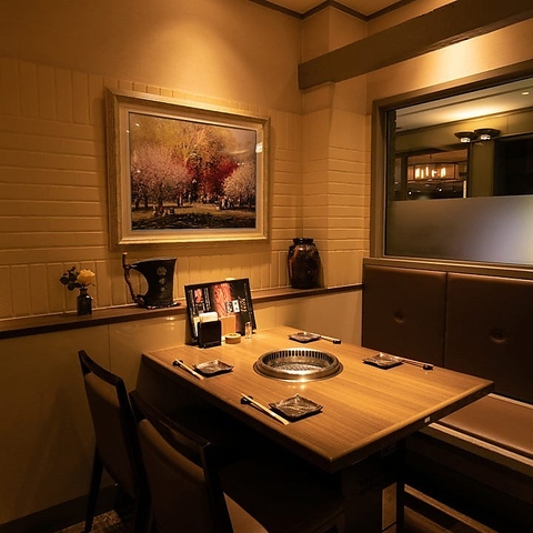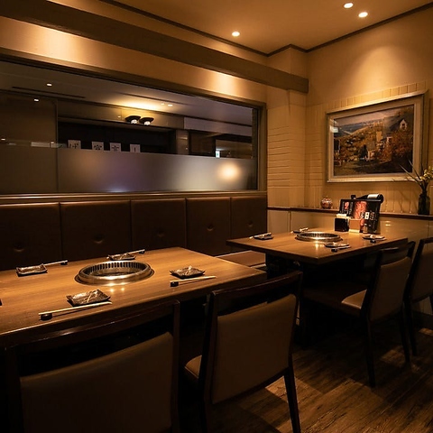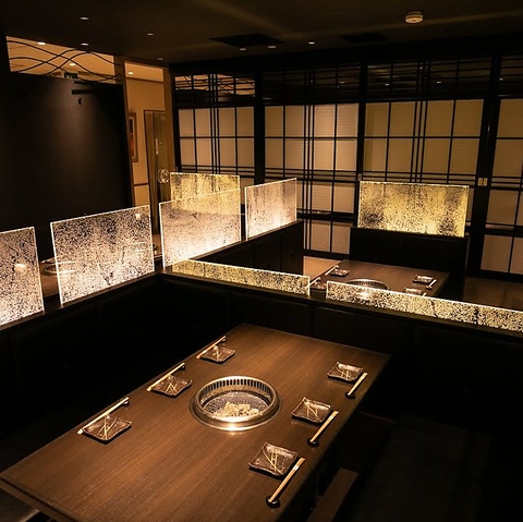 2名様~◎洗練されたくつろぎの空間シャンパンパネルで囲まれた優美な雰囲気と、足をのばしてゆったり過ごせるくつろぎ感が共存する空間。美味しい焼肉を楽しむ宴会にはぜひ掘りごたつ席をご利用ください。2名様の少人数~12名様までの中規模宴会まで幅広いシーンに対応可能。忘年会、接待やご会食にも最適です。