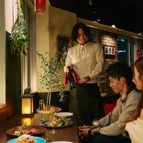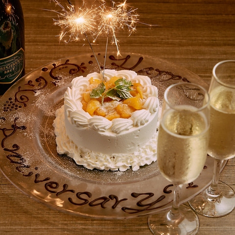 お誕生日や大切な記念日。お料理はもちろん、スパークリングワインやドルチェで忘れられない1日となるよう、心を込めておもてなしいたします。