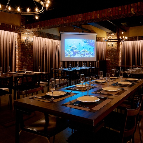 プロジェクターやスクリーンの用意もございます。結婚式の二次会や職場のパーティーなどでのご利用に◎